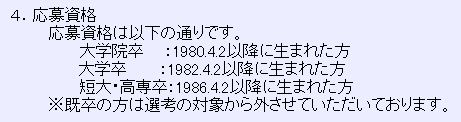 それ以上は応募資格無し。既卒も応募資格無し。